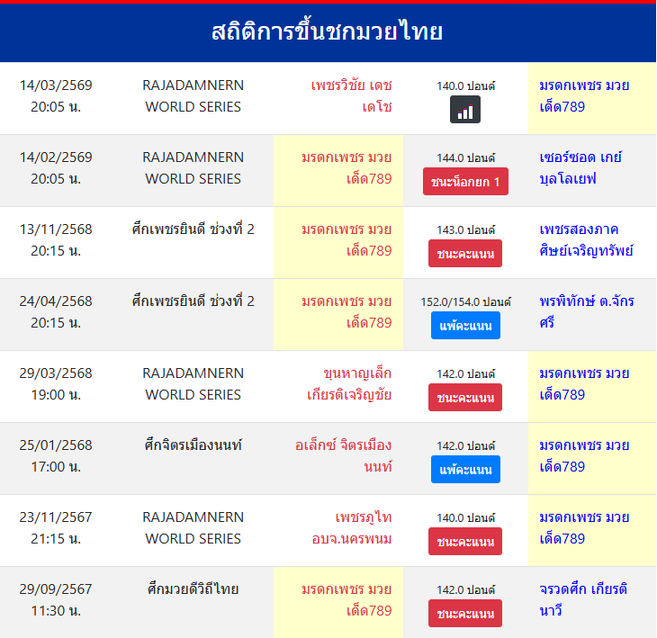 สถิติการขึ้นชกมวยไทย