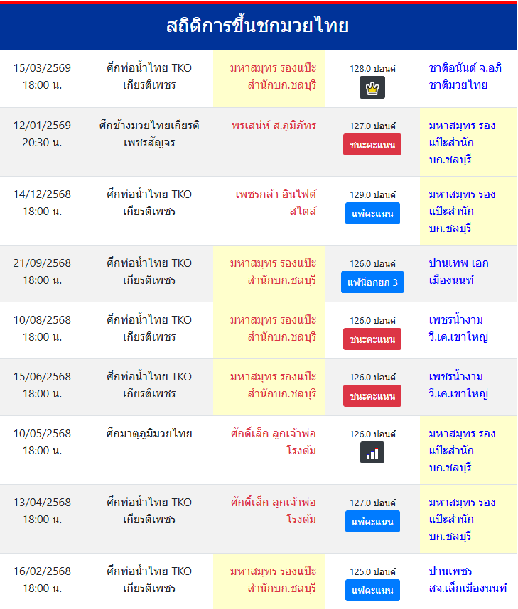 | ขึ้นชกล่าสุด | 12/1/2569 (2 เดือน 2 วัน) |