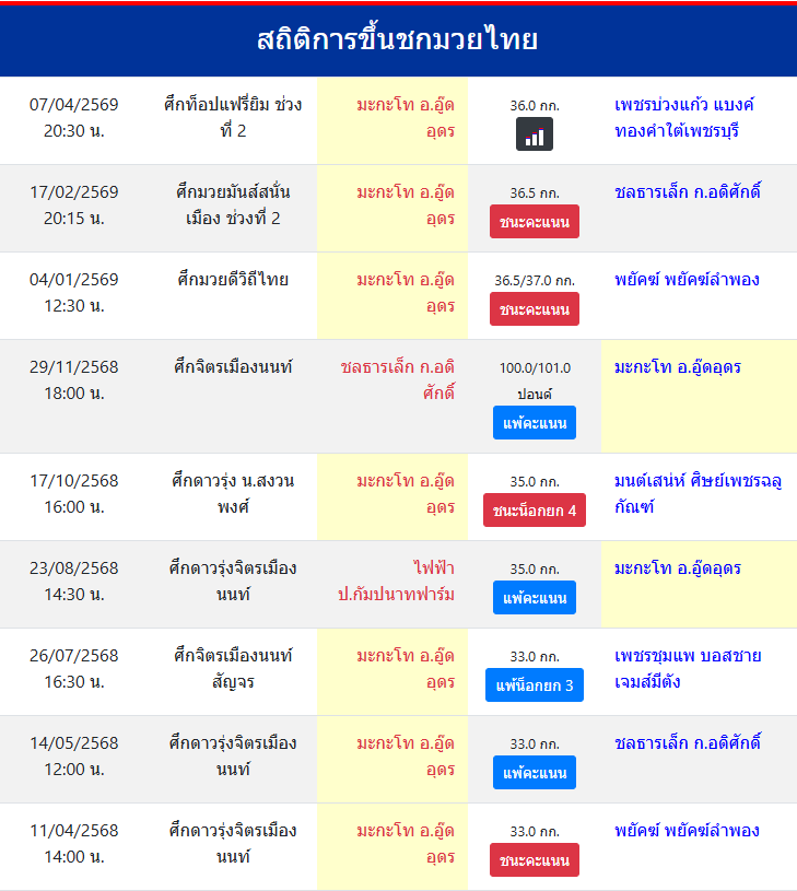 | ชกมาแล้ว | ≥ 30 ครั้ง |