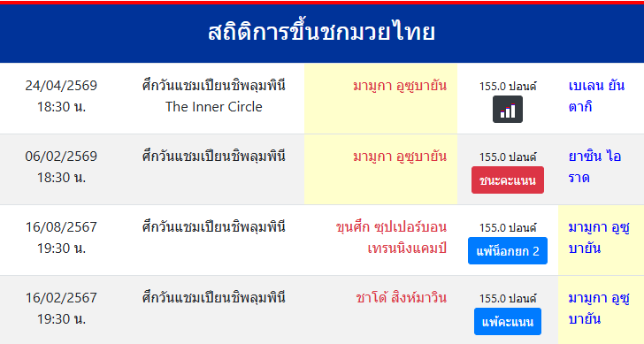 สถิติการขึ้นชกมวยไทย