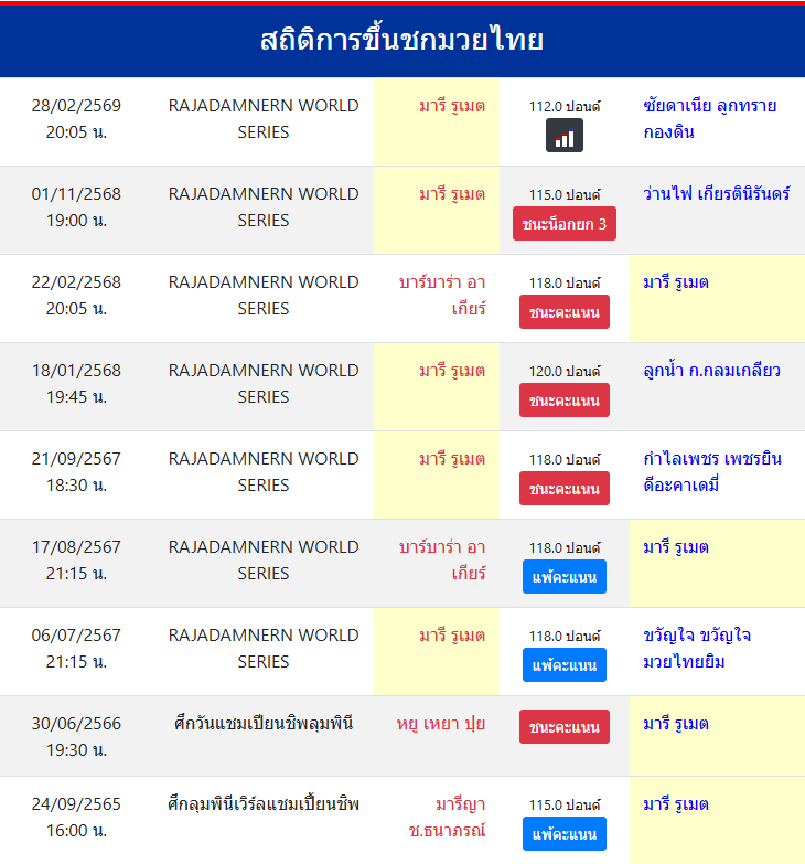 | ขึ้นชกล่าสุด | 1/11/2568 (3 เดือน 25 วัน) |