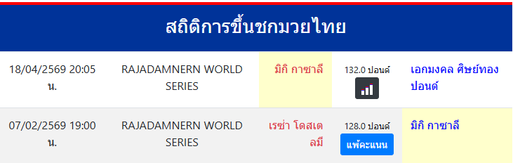 มิกิ กาซาลี "มิกิ กาซาลี" ประเทศ 🇹🇭 ไทย 0 ชนะ 0 แพ้ 0 เสมอ 0 KO/TKO ประวัติและชีวประวัติ สถิติการขึ้นชกมวยไทยมิกิ กาซาลี ขึ้นชกล่าสุด7/2/2569(2 เดือน 11 วัน)จังหวัดสหรัฐอเมริกา