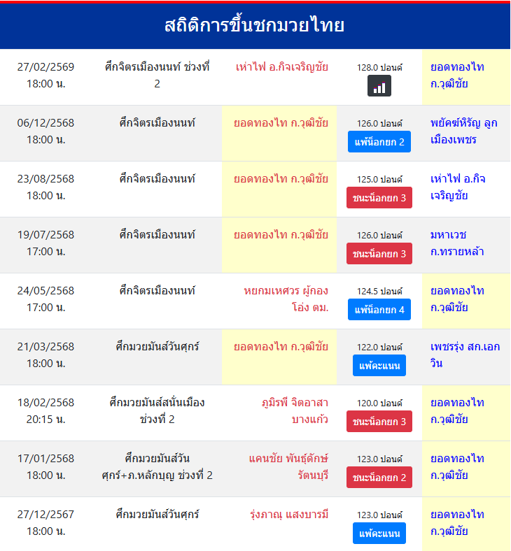 สถิติการขึ้นชกมวยไทย