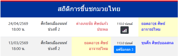 สถิติการขึ้นชกมวยไทย