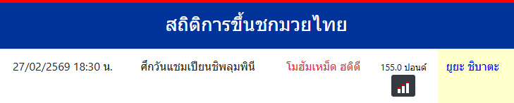 ยูยะ ชิบาตะ "ยูยะ ชิบาตะ" ประเทศ 🇹🇭 ไทย ลีก Muay Thai 0 ชนะ 0 แพ้ 0 เสมอ 0 KO/TKO ประวัติและชีวประวัติ สถิติการขึ้นชกมวยไทยยูยะ ชิบาตะ