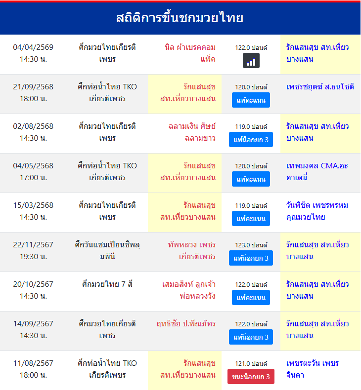 | ขึ้นชกล่าสุด | 21/9/2568 (6 เดือน 13 วัน) |