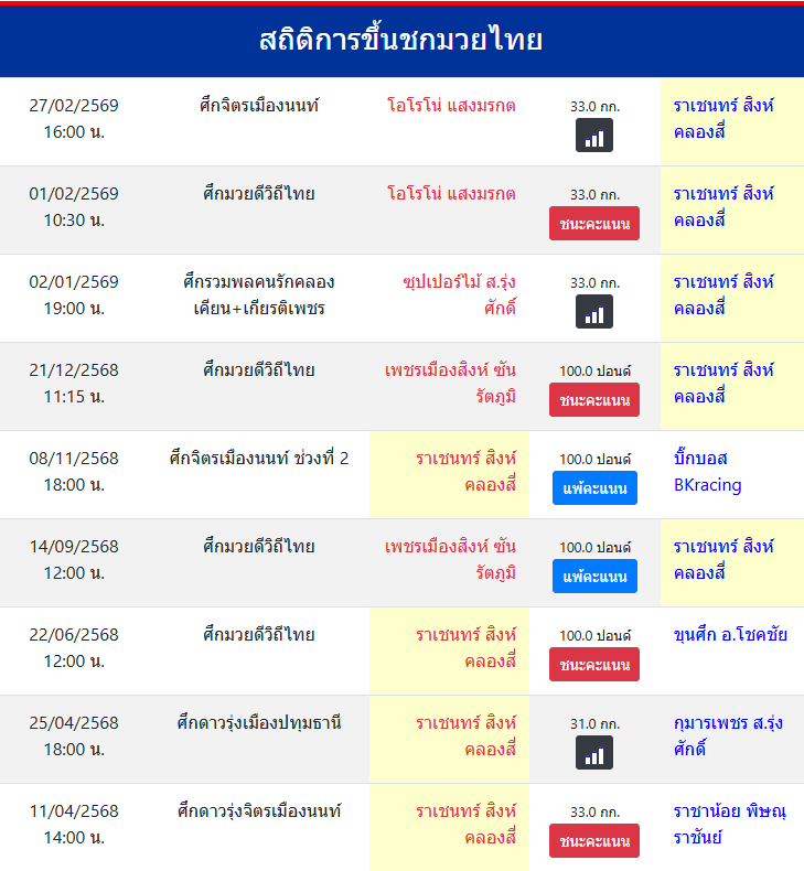 | ขึ้นชกล่าสุด | 1/2/2569 (25 วัน) |