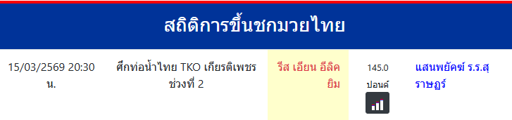 รีส เอียน อีลิคยิม "รีส เอียน อีลิคยิม" ประเทศ 🇹🇭 ไทย ลีก Muay Thai 0 ชนะ 0 แพ้ 0 เสมอ 0 KO/TKO ประวัติและชีวประวัติ สถิติการขึ้นชกมวยไทยรีส เอียน อีลิคยิม จังหวัดอังกฤษ