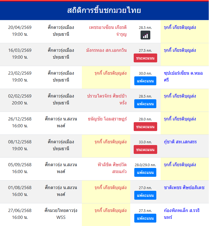 สถิติการขึ้นชกมวยไทย