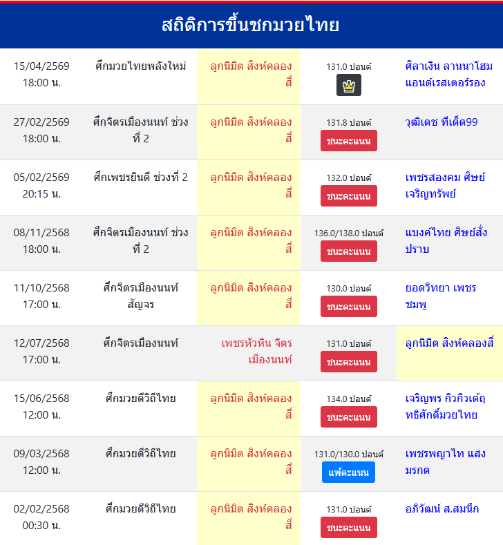 | ชกมาแล้ว | ≥ 100 ครั้ง |