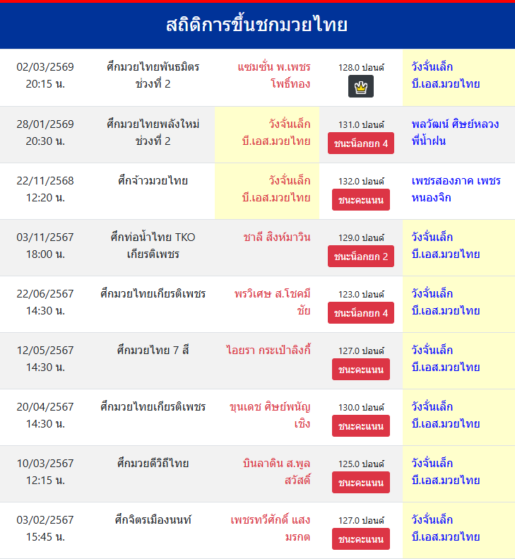 | ขึ้นชกล่าสุด | 28/1/2569 (1 เดือน 2 วัน) |