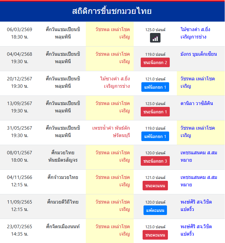 | ขึ้นชกล่าสุด | 4/4/2568 (11 เดือน 1 วัน) |