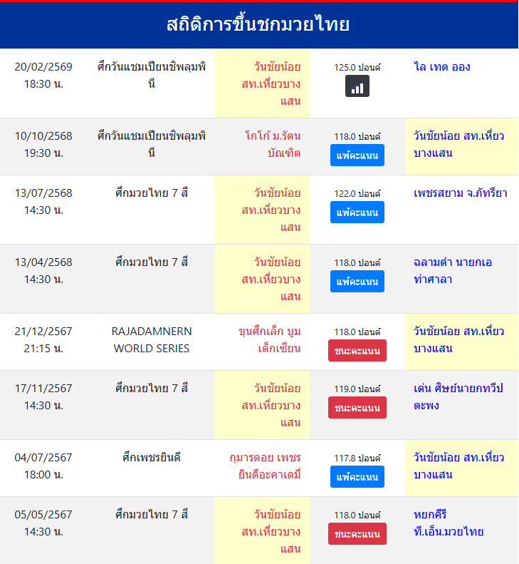 | ชกมาแล้ว | ≥ 100 ครั้ง |