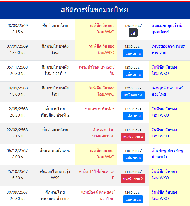 สถิติการขึ้นชกมวยไทย