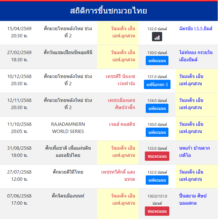 | ขึ้นชกล่าสุด | 27/2/2569 (1 เดือน 18 วัน) |