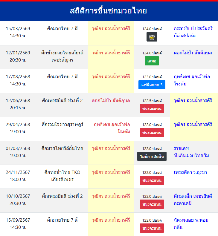 | ขึ้นชกล่าสุด | 12/1/2569 (2 เดือน 2 วัน) |