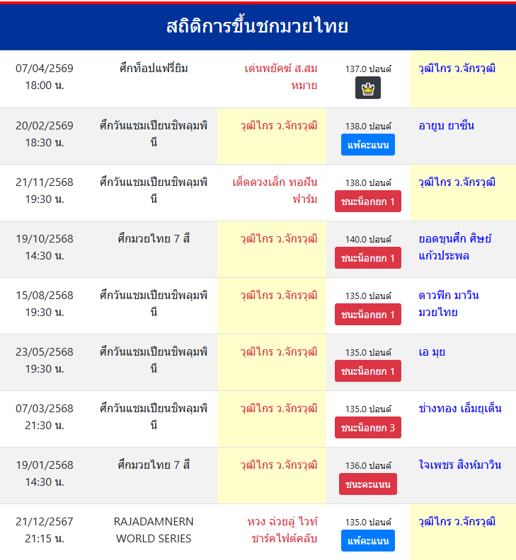 | ขึ้นชกล่าสุด | 20/2/2569 (1 เดือน 16 วัน) |
