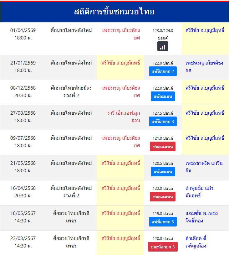สถิติการขึ้นชกมวยไทย