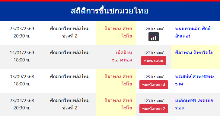 | ขึ้นชกล่าสุด | 14/1/2569 (2 เดือน 10 วัน) |