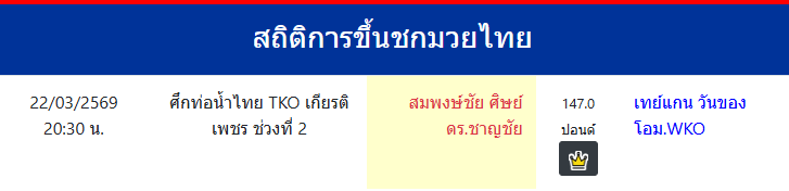 สถิติการขึ้นชกมวยไทย