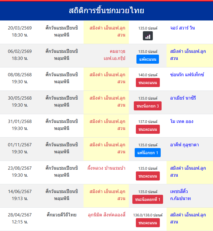 | ขึ้นชกล่าสุด | 6/2/2569 (1 เดือน 13 วัน) |