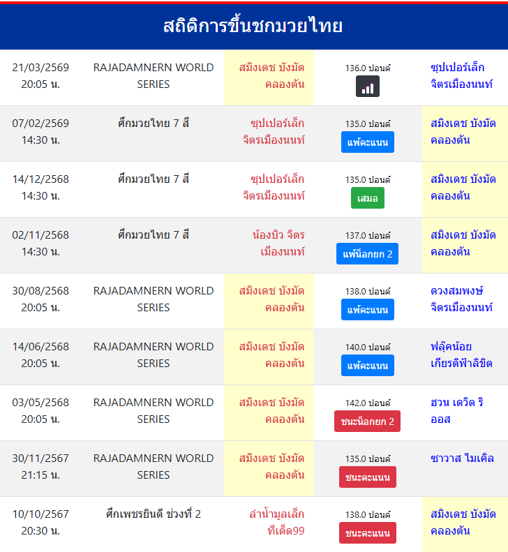 | ชกมาแล้ว | ≥ 100 ครั้ง |