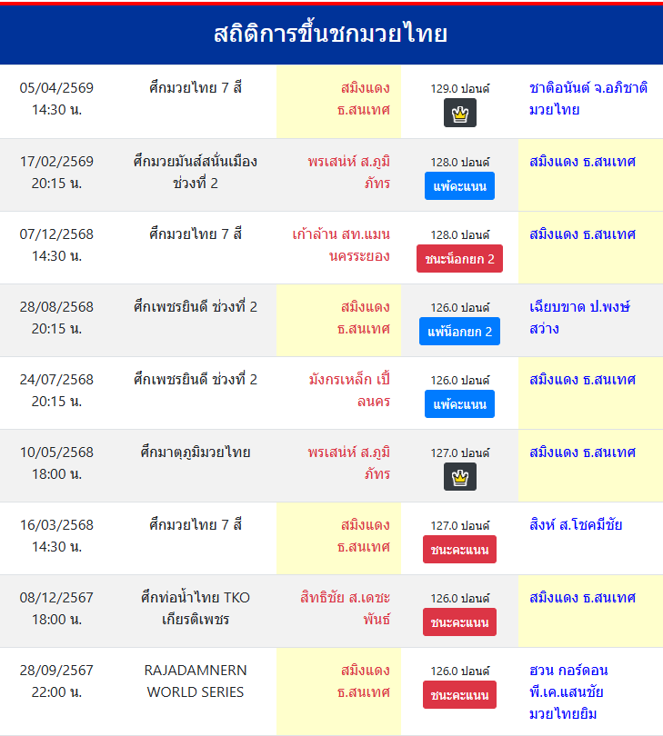 | ขึ้นชกล่าสุด | 17/2/2569 (1 เดือน 17 วัน) |