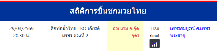 สวยงาม อ.อู๊ดอุดร "สวยงาม อ.อู๊ดอุดร" ประเทศ 🇹🇭 ไทย ลีก Muay Thai 0 ชนะ 0 แพ้ 0 เสมอ 0 KO/TKO ประวัติและชีวประวัติ สถิติการขึ้นชกมวยไทยสวยงาม อ.อู๊ดอุดร