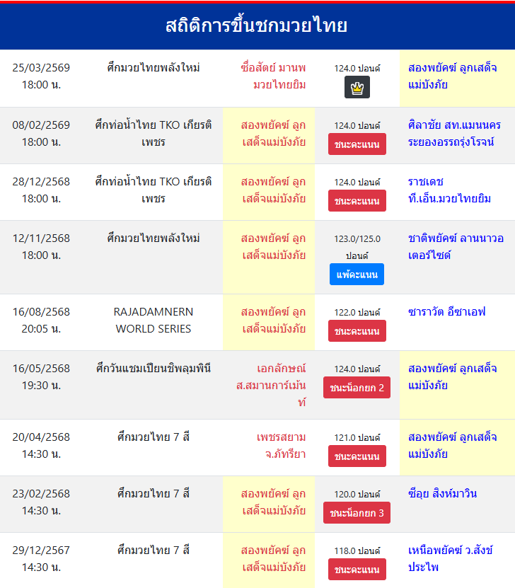 | ขึ้นชกล่าสุด | 8/2/2569 (1 เดือน 16 วัน) |