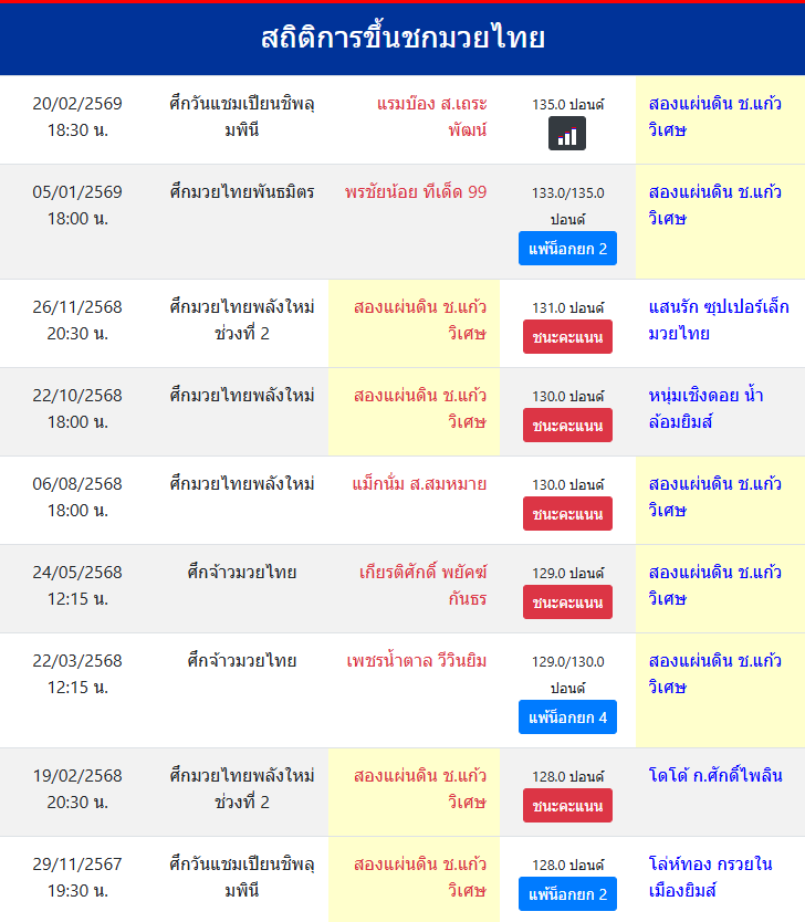 | ขึ้นชกล่าสุด | 5/1/2569 (1 เดือน 14 วัน) |
