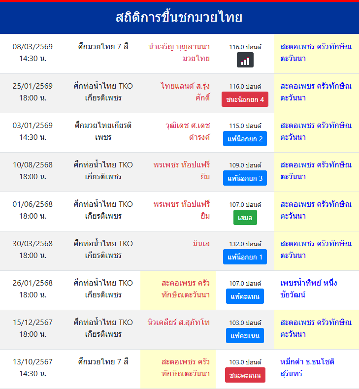 | ขึ้นชกล่าสุด | 25/1/2569 (1 เดือน 10 วัน) |