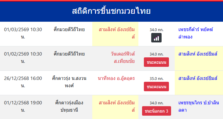 สถิติการขึ้นชกมวยไทย