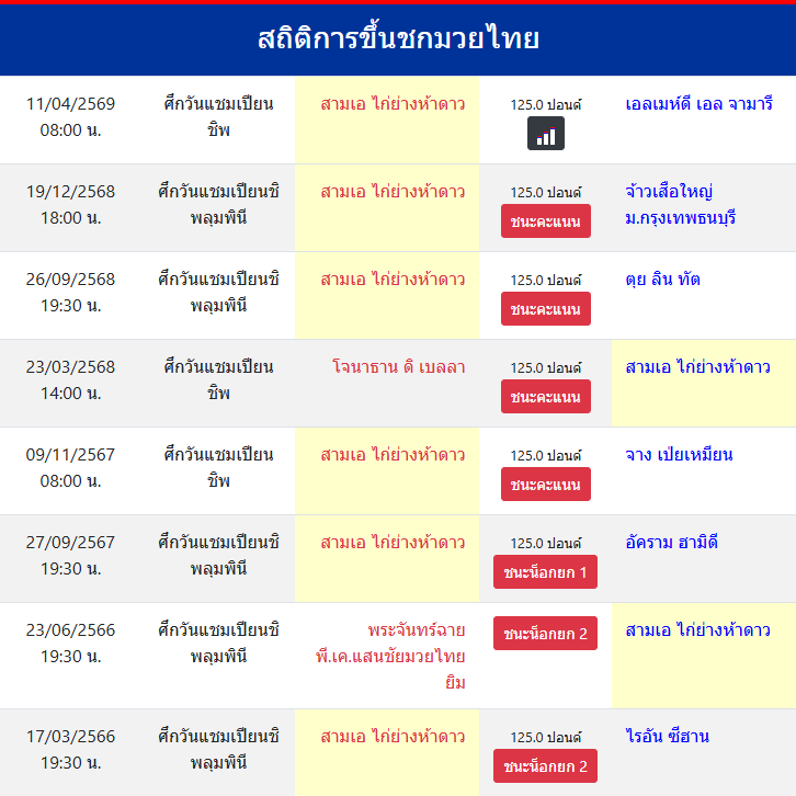 สถิติการขึ้นชกมวยไทย
