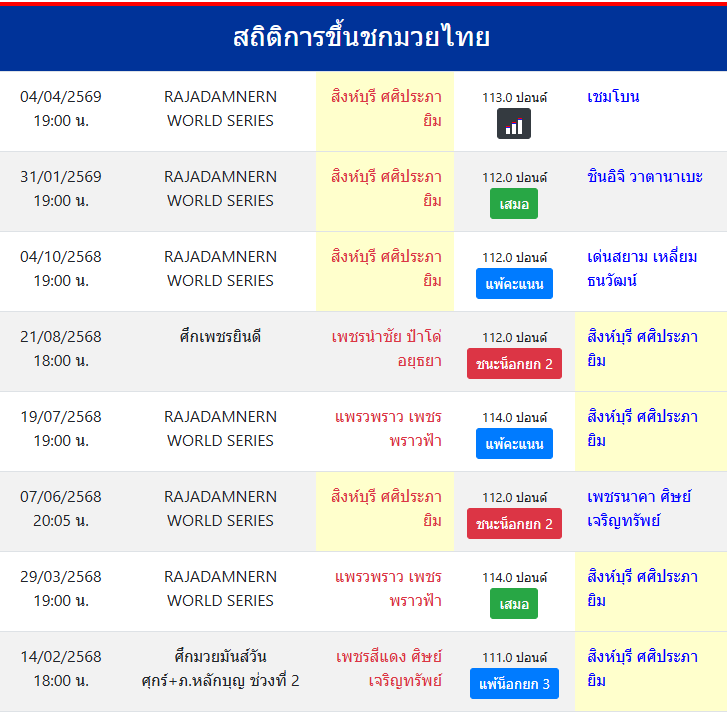 สถิติการขึ้นชกมวยไทย