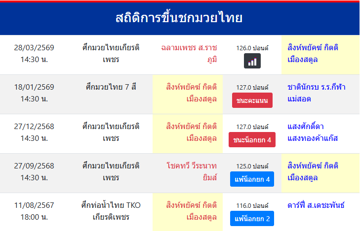 สถิติการขึ้นชกมวยไทย