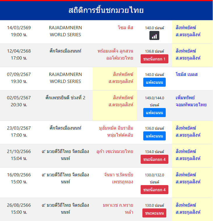 | ขึ้นชกล่าสุด | 12/4/2568 (10 เดือน 27 วัน) |