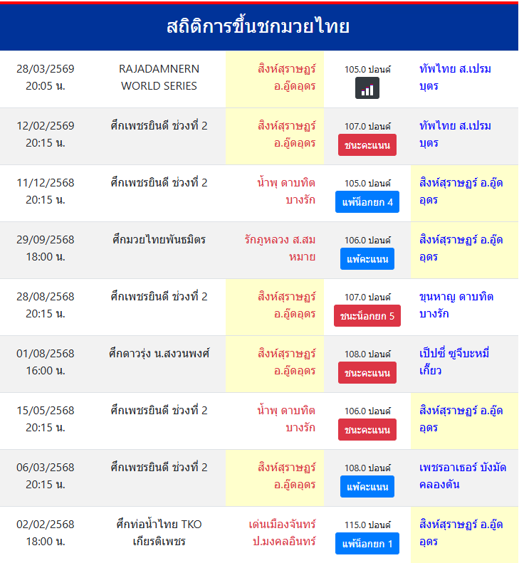 สถิติการขึ้นชกมวยไทย