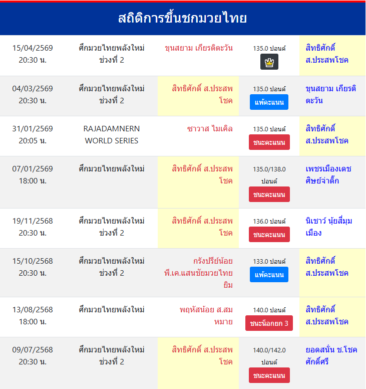 | ขึ้นชกล่าสุด | 4/3/2569 (1 เดือน 10 วัน) |