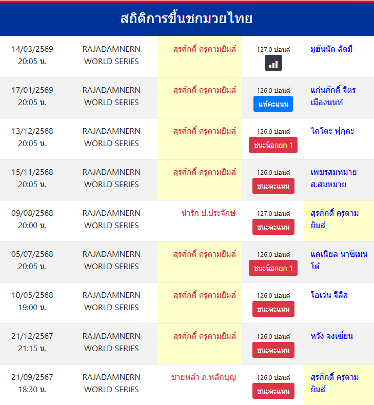 สถิติการขึ้นชกมวยไทย