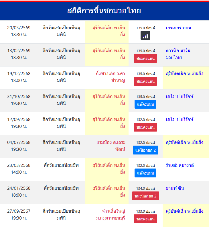| ขึ้นชกล่าสุด | 13/2/2569 (1 เดือน 6 วัน) |