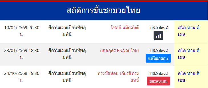 สถิติการขึ้นชกมวยไทย