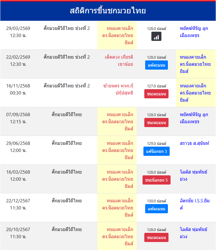 | ขึ้นชกล่าสุด | 22/2/2569 (1 เดือน 6 วัน) |