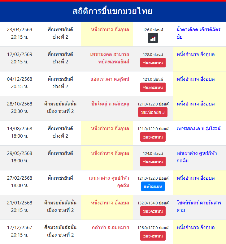 | ขึ้นชกล่าสุด | 12/3/2569 (1 เดือน 10 วัน) |