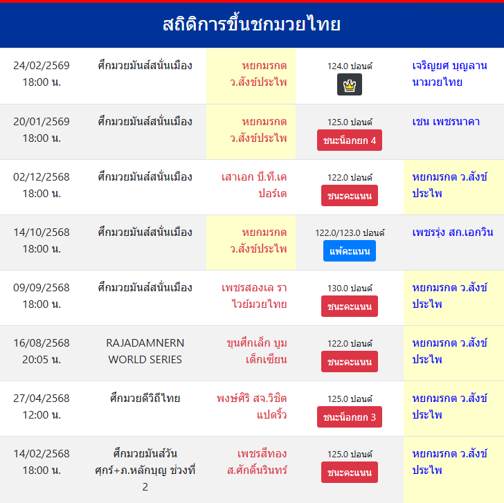 สถิติการขึ้นชกมวยไทย
