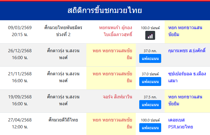 สถิติการขึ้นชกมวยไทย
