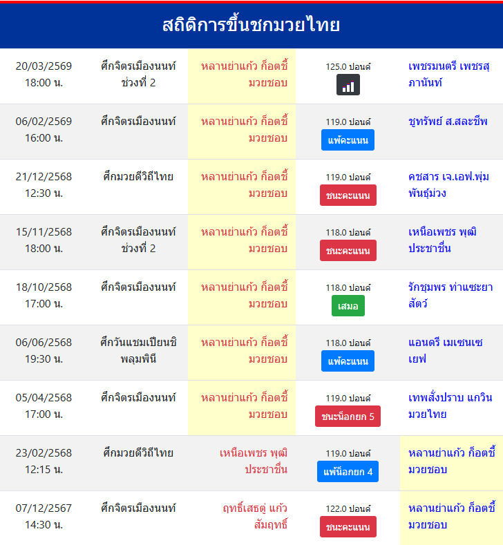 | ชกมาแล้ว | ≥ 100 ครั้ง |