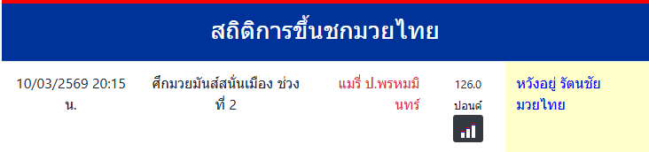 หวังอยู่ รัตนชัยมวยไทย "หวังอยู่ รัตนชัยมวยไทย" ประเทศ 🇹🇭 ไทย ลีก Muay Thai 0 ชนะ 0 แพ้ 0 เสมอ 0 KO/TKO ประวัติและชีวประวัติ สถิติการขึ้นชกมวยไทยหวังอยู่ รัตนชัยมวยไทย จังหวัดจีน