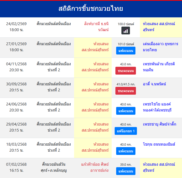 | ขึ้นชกล่าสุด | 27/1/2569 (28 วัน) |