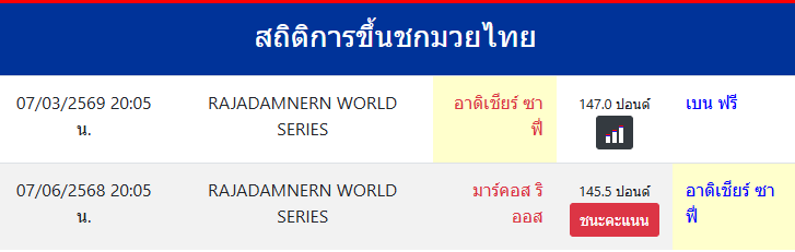 อาดิเชียร์ ซาฟี่ "อาดิเชียร์ ซาฟี่" ประเทศ 🇹🇭 ไทย ลีก Muay Thai 0 ชนะ 0 แพ้ 0 เสมอ 0 KO/TKO ประวัติและชีวประวัติ สถิติการขึ้นชกมวยไทยอาดิเชียร์ ซาฟี่ ขึ้นชกล่าสุด7/6/2568(9 เดือน )