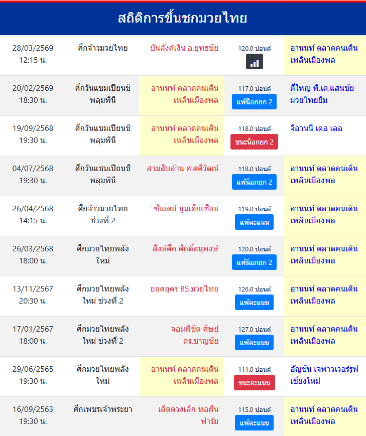 | ขึ้นชกล่าสุด | 20/2/2569 (1 เดือน 5 วัน) |